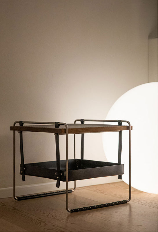 Contenitore cuoio su telaio inox